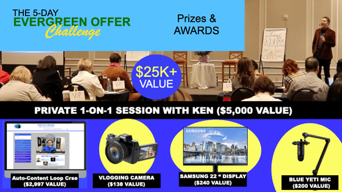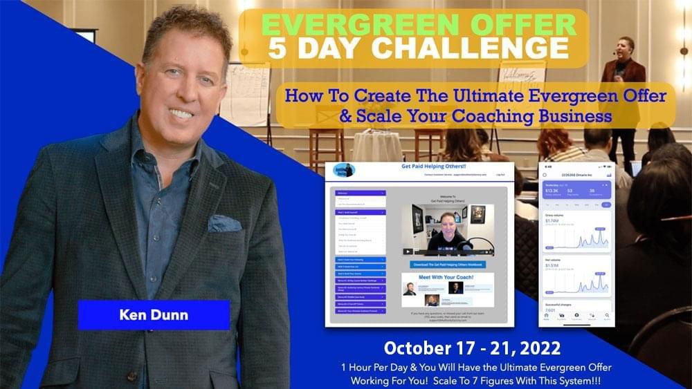 THE #1 SECRET IN EVERY 7-8 FIGURE COACHES BUSINESS:  THEY HAVE A FRONT END EVERGREEN OFFER THAT BRINGS IN DOZENS OF HIGH TICKET CLIENTS EVERYDAY, AUTOMATICALLY!!   Join Ken Dunn in this 5 day challenge and learn how to craft the perfect front end offer, that can be completely automated, making you tens of thousands per month and landing the perfect high ticket clients.