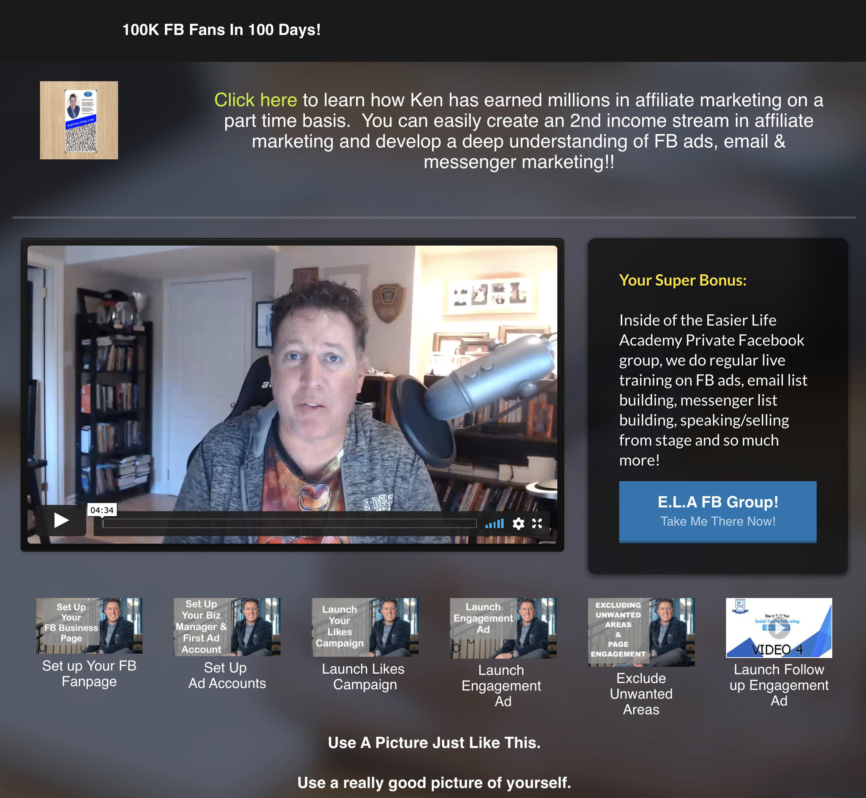 It's a program that teaches students how to build a massive Facebook page and start signing up clients with fancy sales funnels.